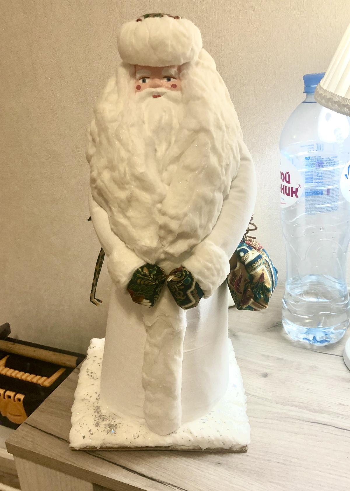 Мне в наследство от бабушки и дедушки остались их новогодние игрушки, елка и дед Мороз. Не все удалось сохранить, квартиру после смерти бабушки и дедушки сдали в аренду, а игрушки остались на антресолях. Забрать их было некуда, родителям они были не нужны, а квартира где жила я, была малюсенькой и вещей было много, да и елку мы с мужем не ставили, это отдельная история, не хотела бы вдаваться в подробности. Но все эти годы я вспоминала об игрушках и елке с ностальгией, мечтала их забрать. После развода купила свою квартиру, и наконец забрала их себе. Дед Мороз пострадал от времени и плохого хранения больше всего, халат был рваный и в пятнах, краска с лица облупилась.