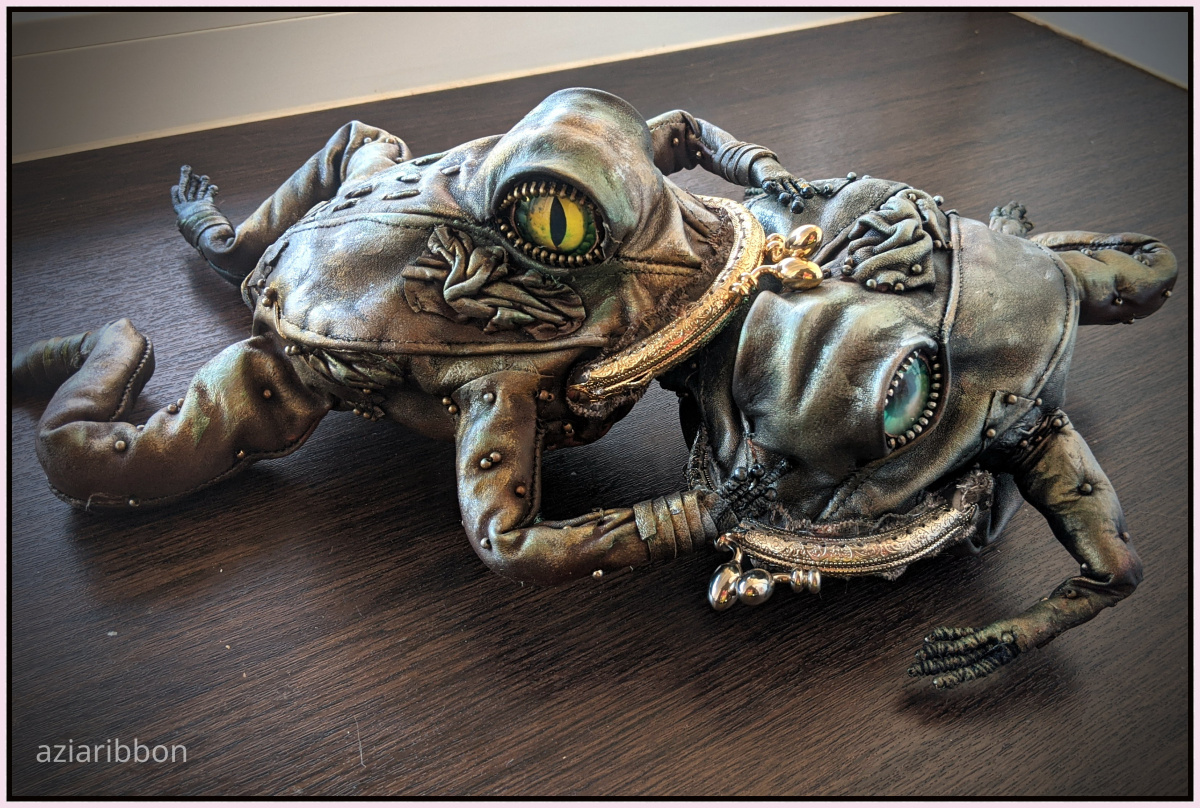 Практически все показанные страшилки уже разъехались по новым домам. У нас в Казахстане осталась жить одна жабка и одна рыба. Дракончик, жабка и две рыбы перебрались в Питер. Еще одна рыба уплыла в США. Одна жаба переехала по соседству — в Канаду, и еще одна — в Норвегию. Так что большой мир не обижен)))
