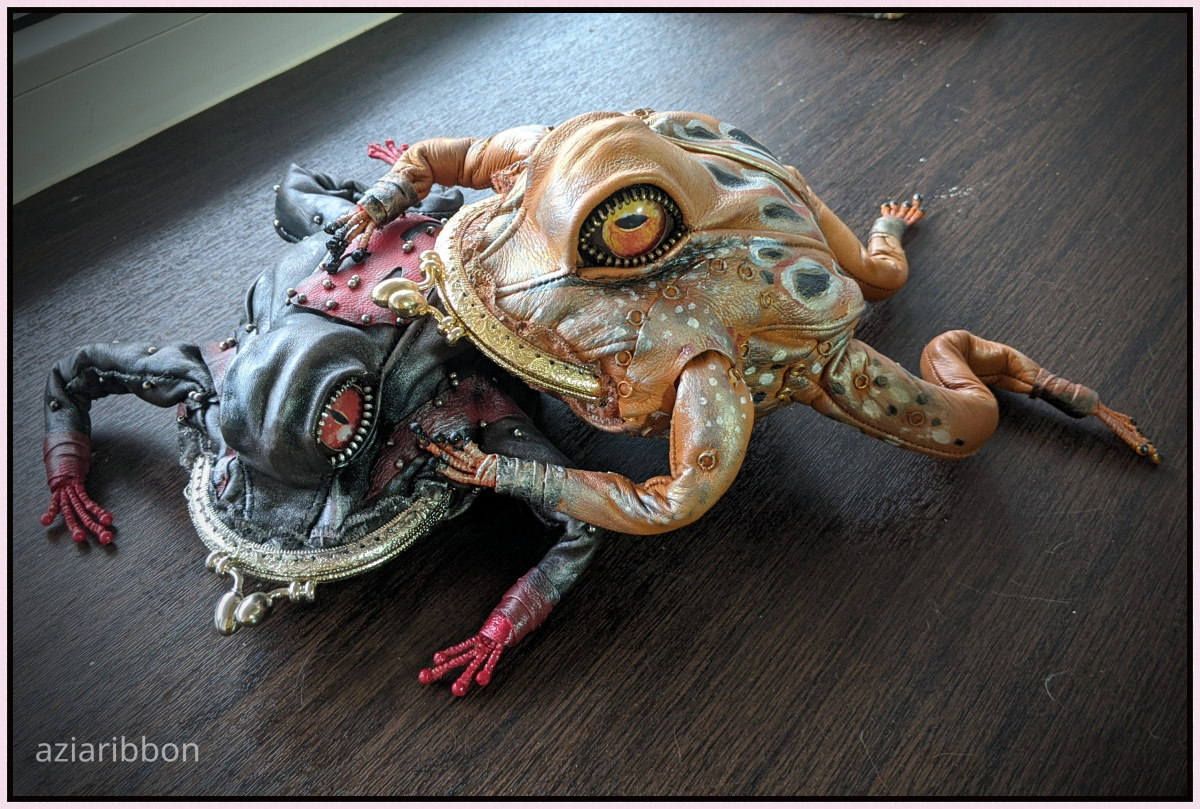 Первых рыб и лягух я сделала в 2016 году. С тех пор разные рыбьи косяки и лягушачьи компании скачут по сети то там, то сям))) Тех, которых показала в этм посте, сделала в течение последнего месяца — свеженькие)