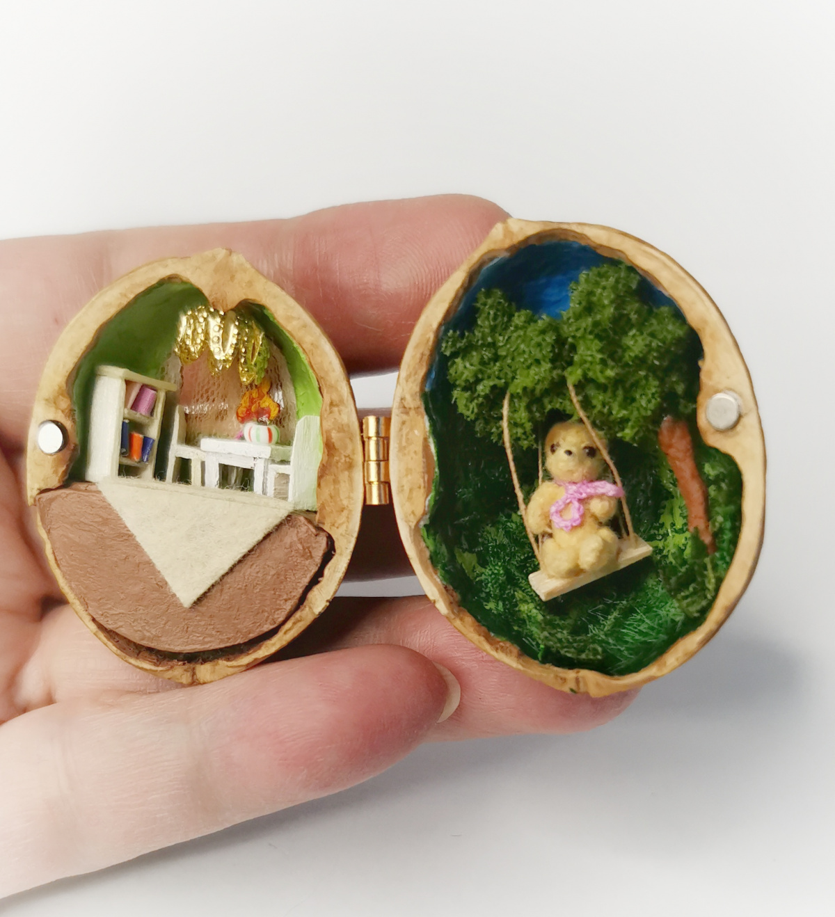 Еще один вопросик: из чего травка? Я смотрю, там разные виды трав. Сделано просто великолепно, есть иллюзия глубины, это очень здорово. И петли (дверные) — такие крошечные и такие аккуратные. Тоже сами делали? Работа просто ювелирная!