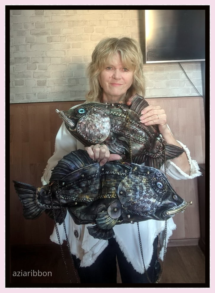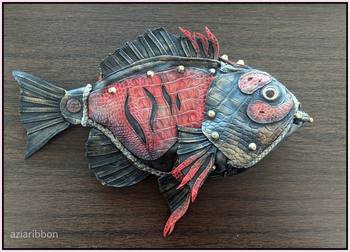 А пока самовыражаюсь на крупняке — кожаных сумках. Рыб сделала много, всякого-разного размера и видов.