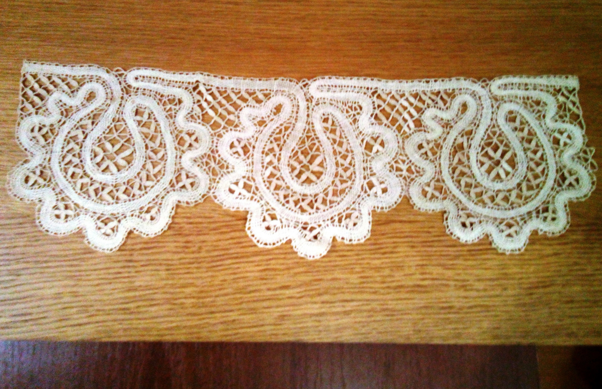 Только спустя время обрезала нити, коклюшки продала. Треть галстука убрала подальше, так, что сейчас еле нашла…