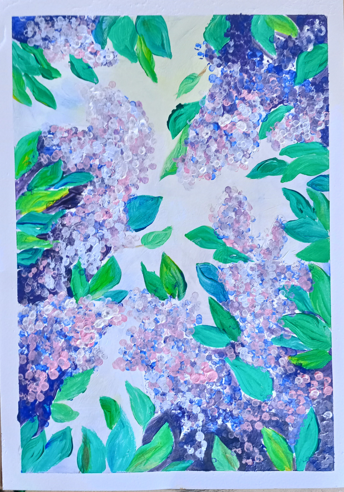 Да, сирень отцвела молниеносно. И чтобы как то продлить удовольствие я взялась за кисти. И вот что получилось. Если будет интересно, могу добавить ссылки на МК, по которым рисовала.