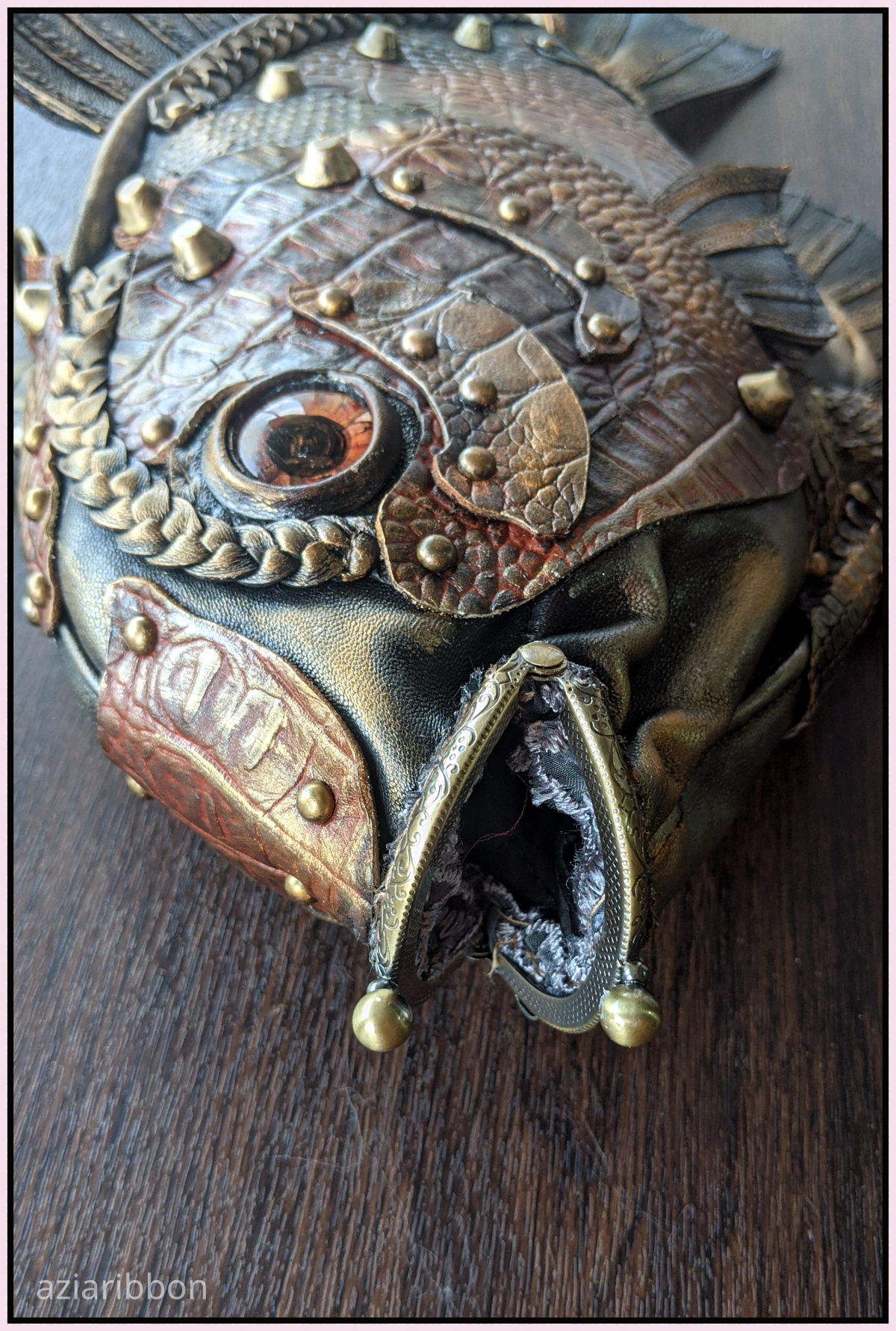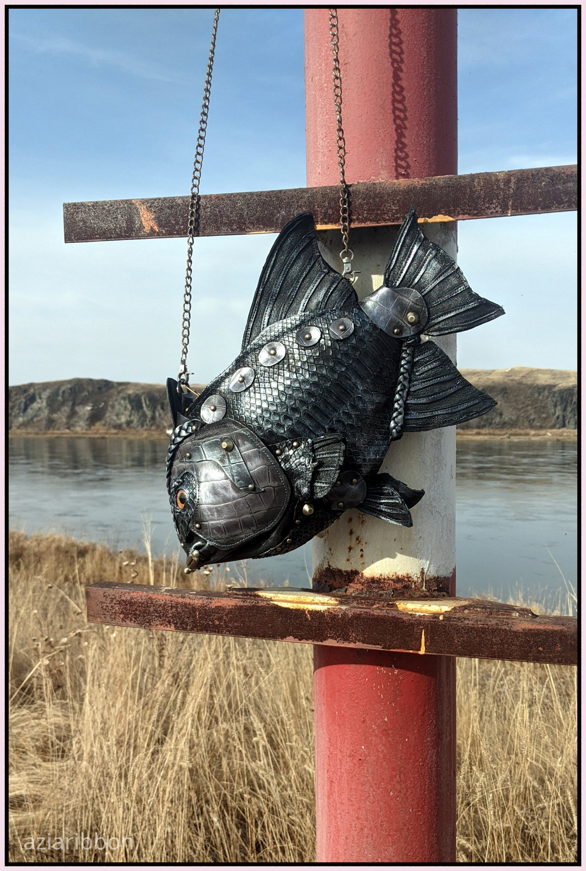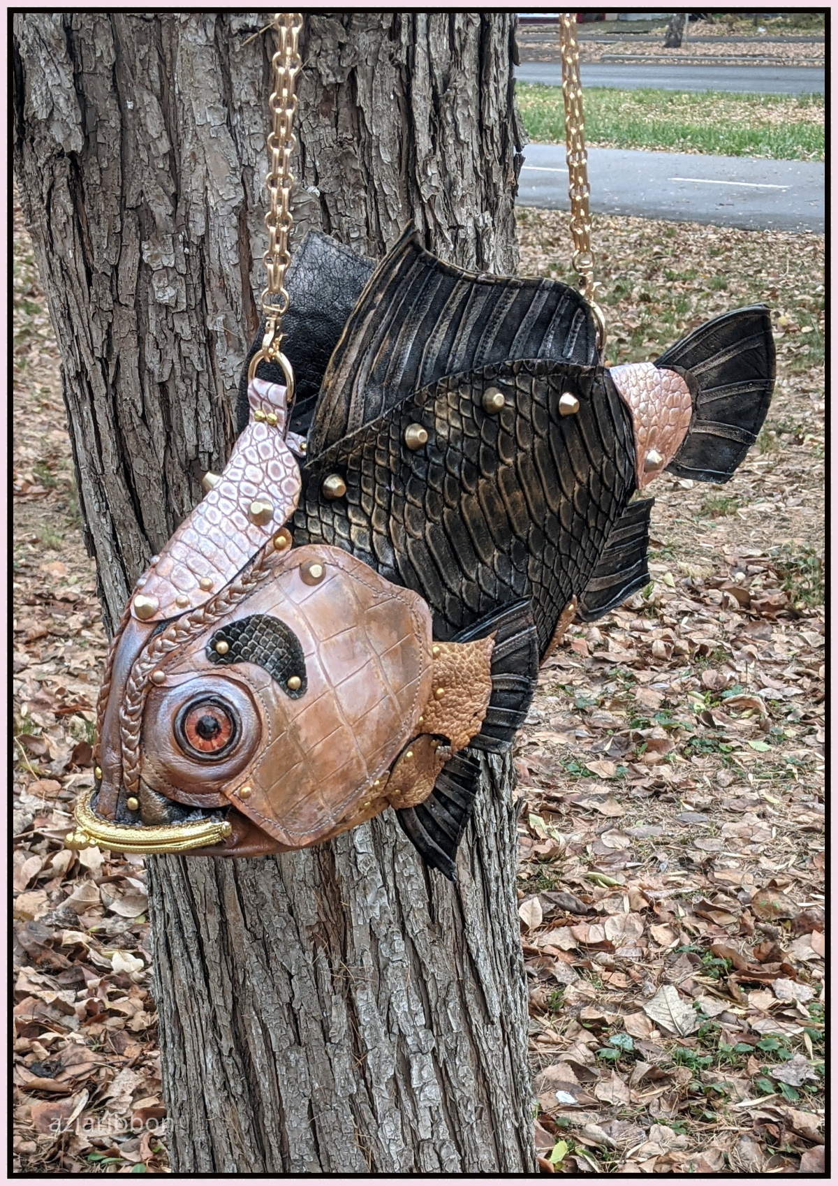 Эта сумма не всегда позволяет восполнить запас потраченных материалов, особенно, когда я использую дорогую экзотическую кожу. Например, в нескольких этих рыбах задействована кожа сетчатого питона. Вот сейчас нового заказала. Большого не потянула материально, поэтому заказала 1,7 м длиной.