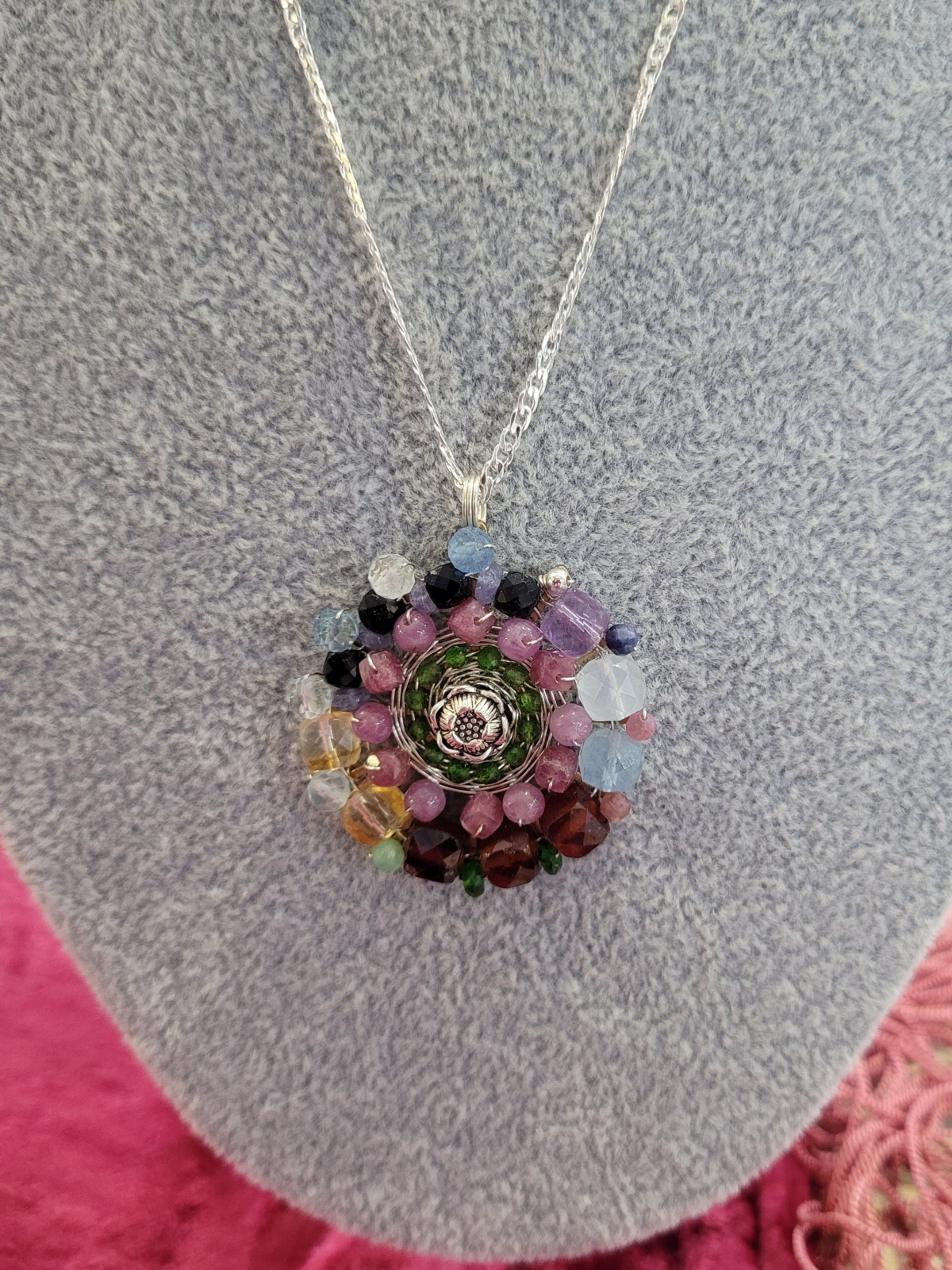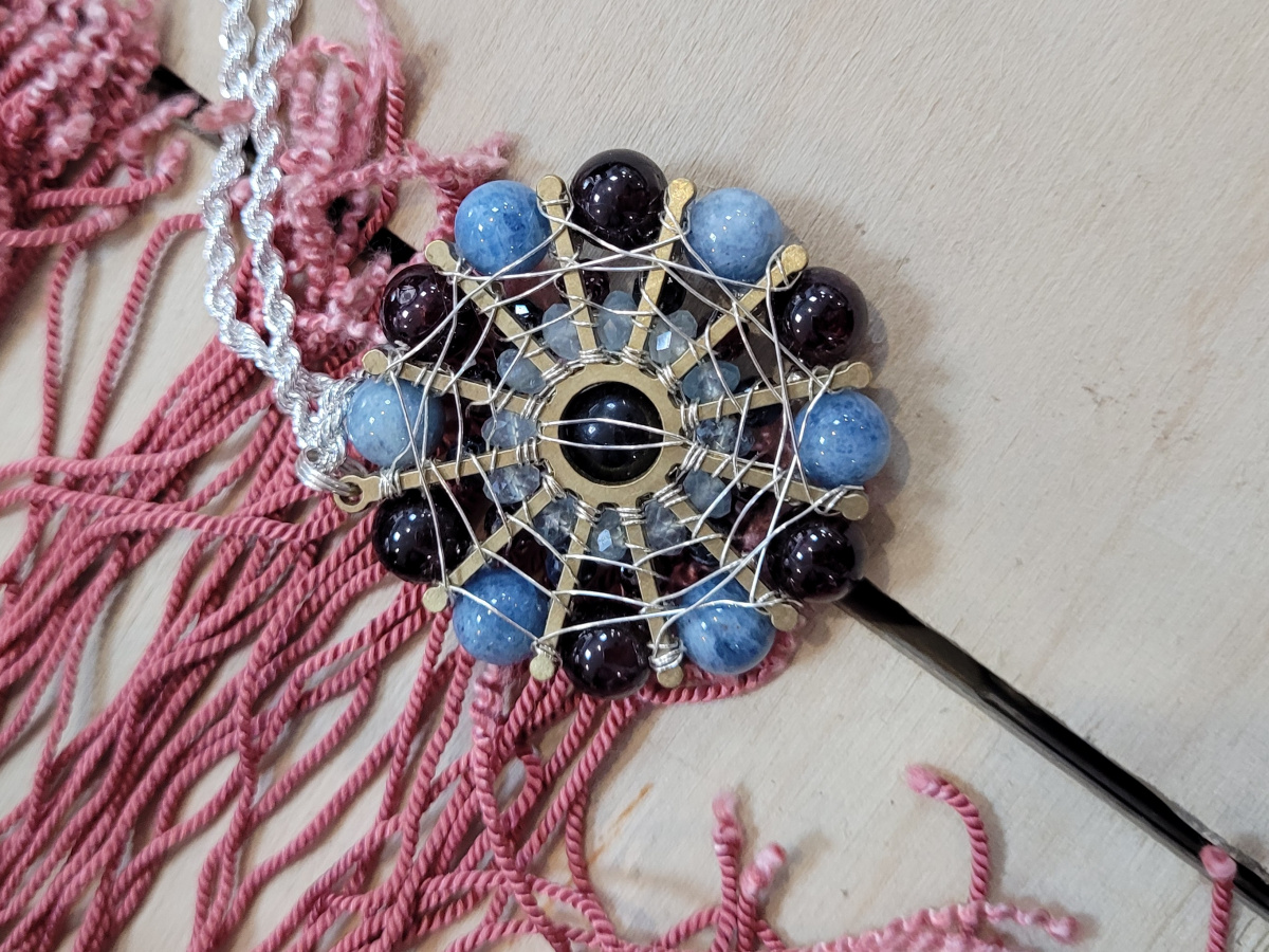 И познакомилась с мастерицей Галиной Голубковой, делает ювелирные мандалы. Прямо восхитительные штучки, а ювелирные потому, что проволока используется только серебряная или посеребренная, а бусины только из натуральных камней.