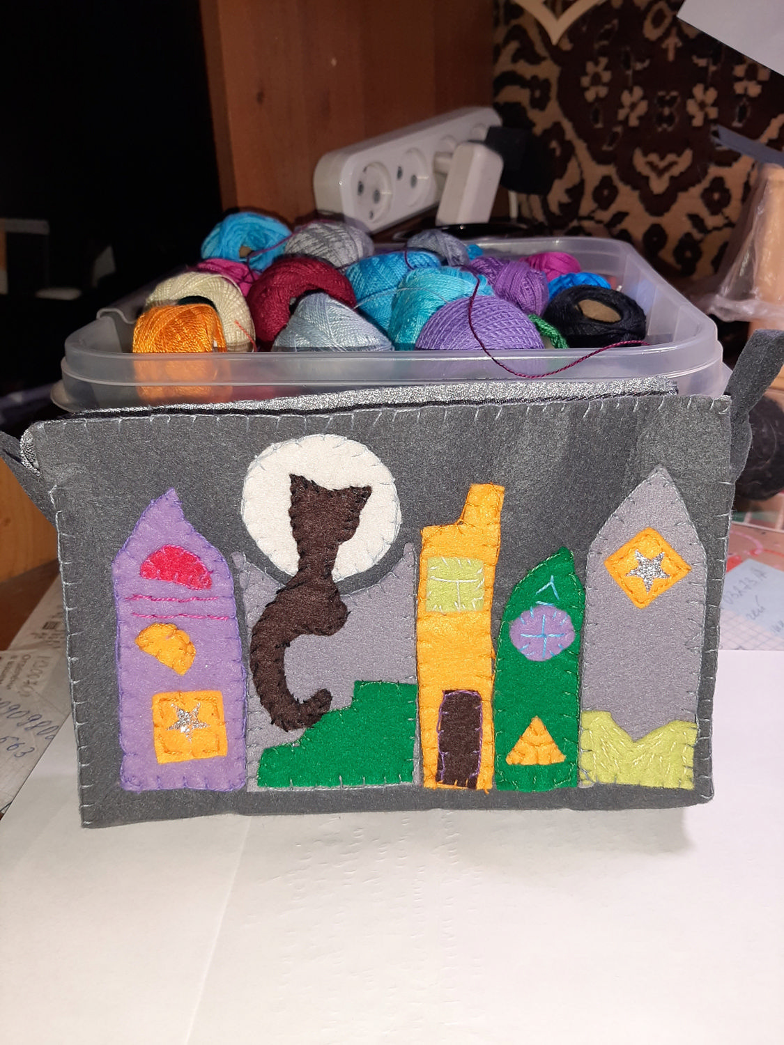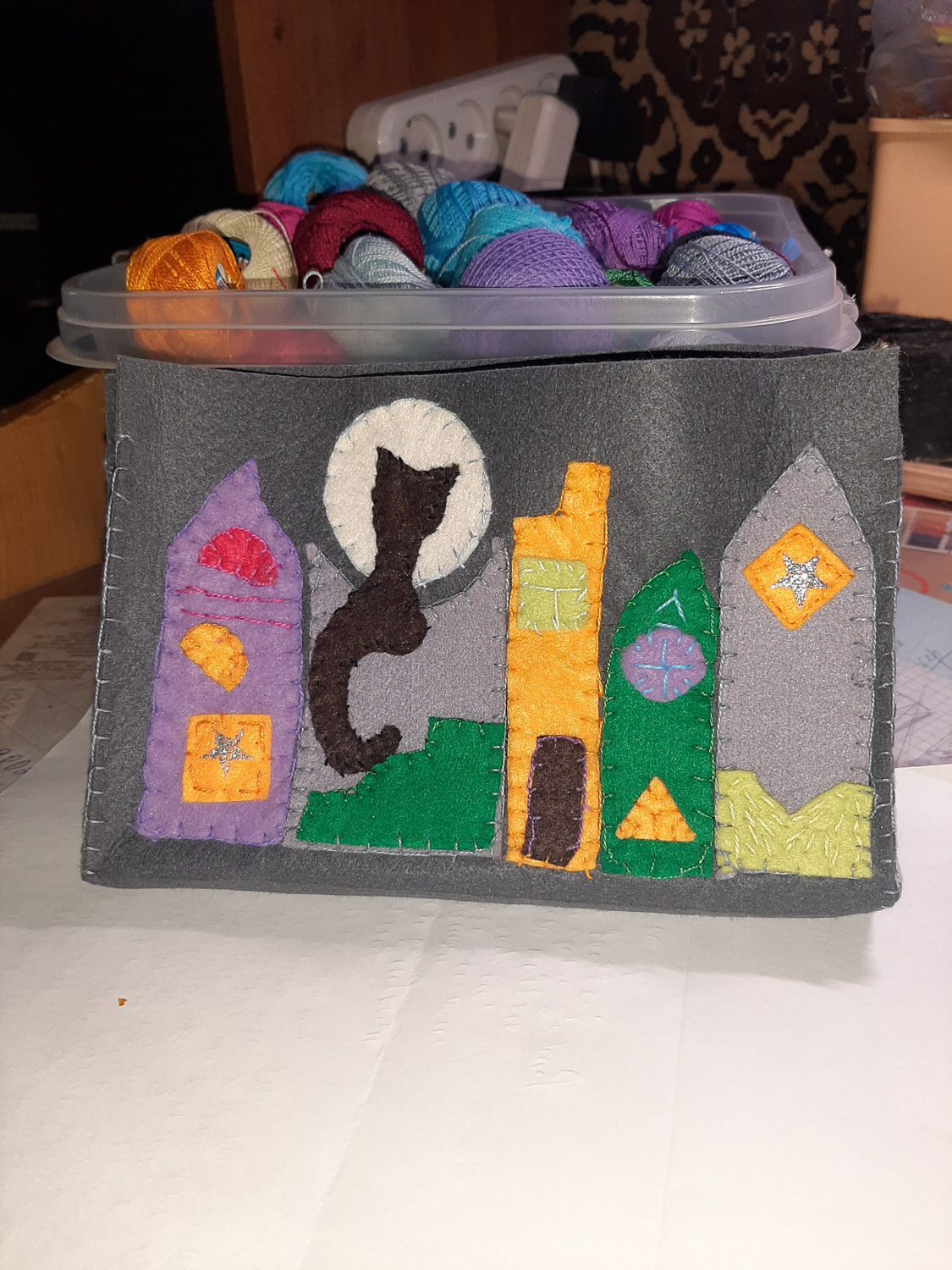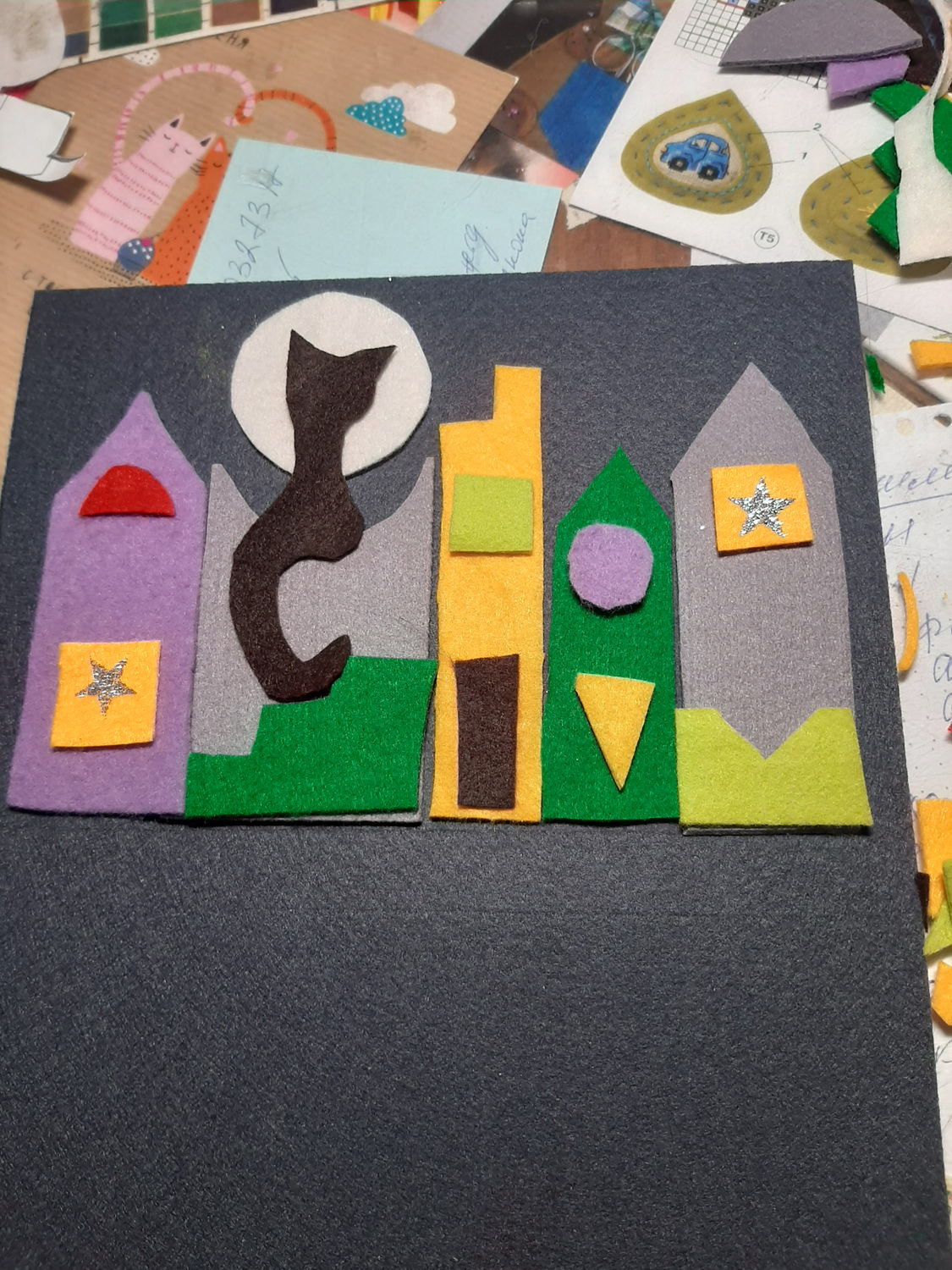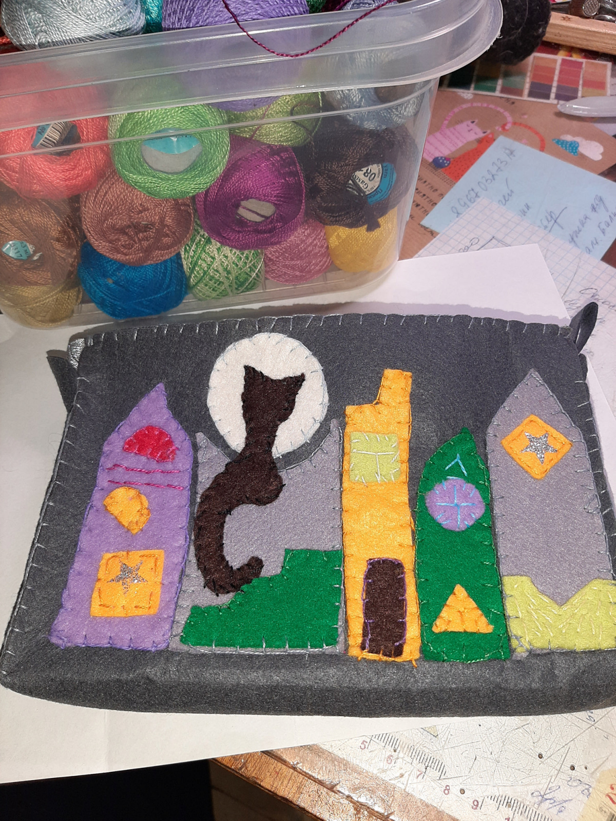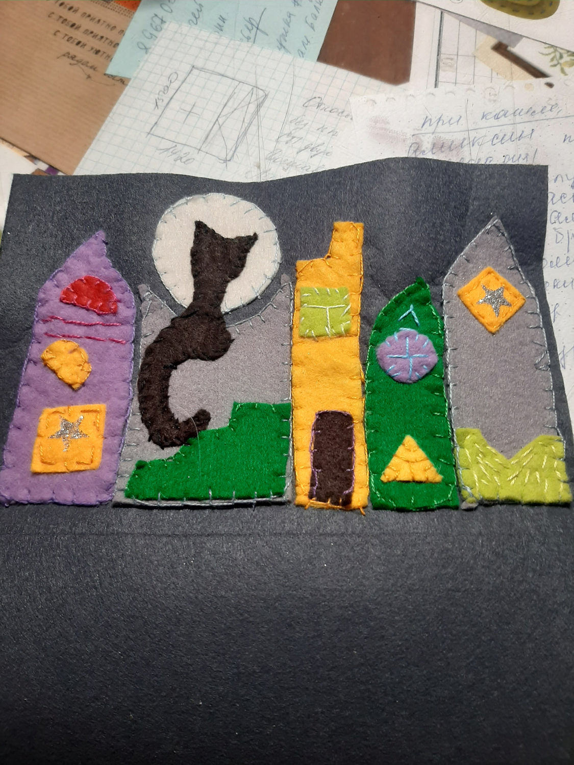 Пришила мелкие детали, потом все собрала и пришила к фетровой основе-этот фетр не особо мягкий и не ворсистый, плотный и держит форму