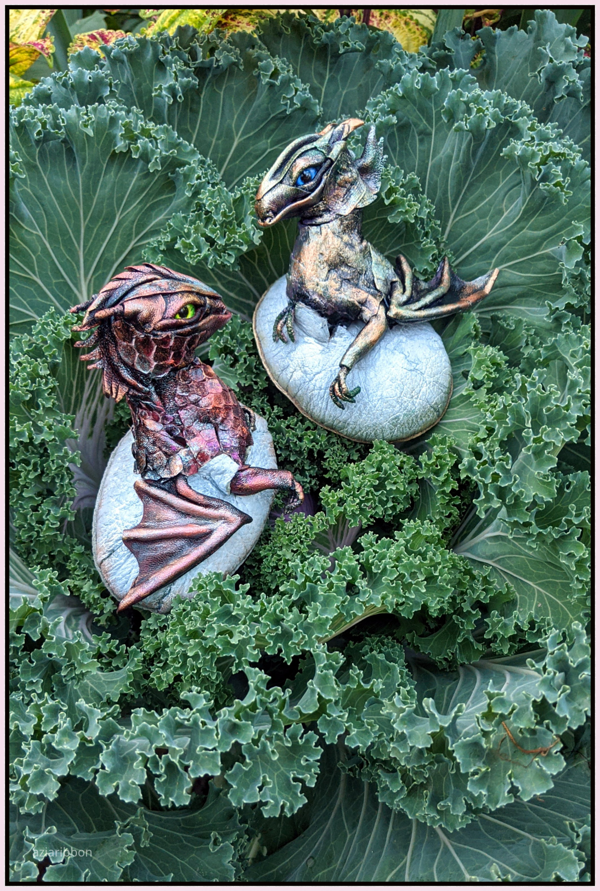Капуста на даче выращена))) Она декоративная. На момент фотосессии с дракончиками еще не окрасилась, сейчас начала цвет приобретать.