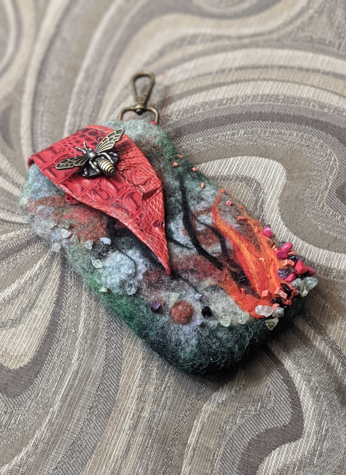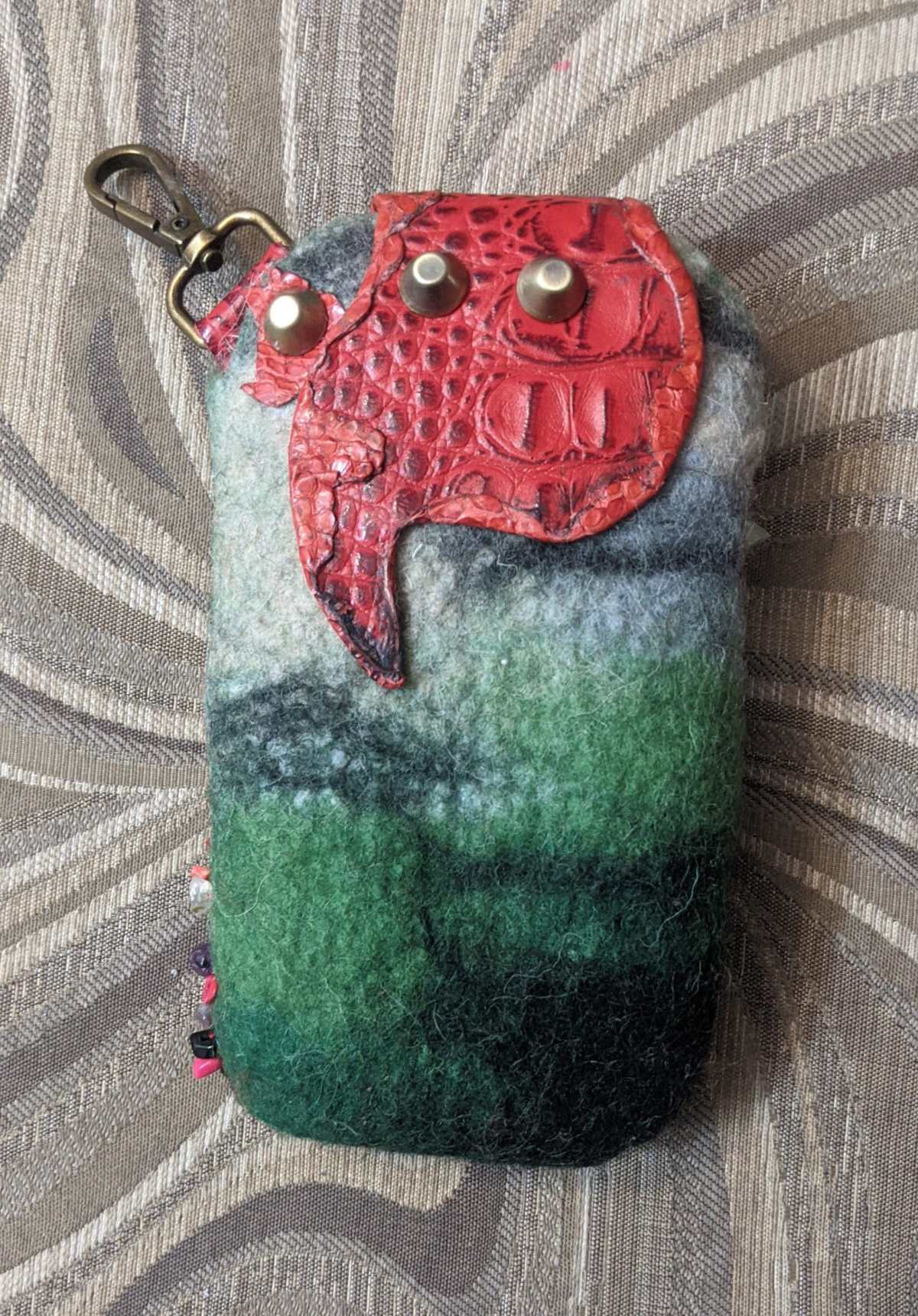 В четверг валяли чехол на телефон. Все как-то за 2 часа успели, а я традиционно не уложилась, поэтому сырой недовалянный образец забрала на доработку домой.