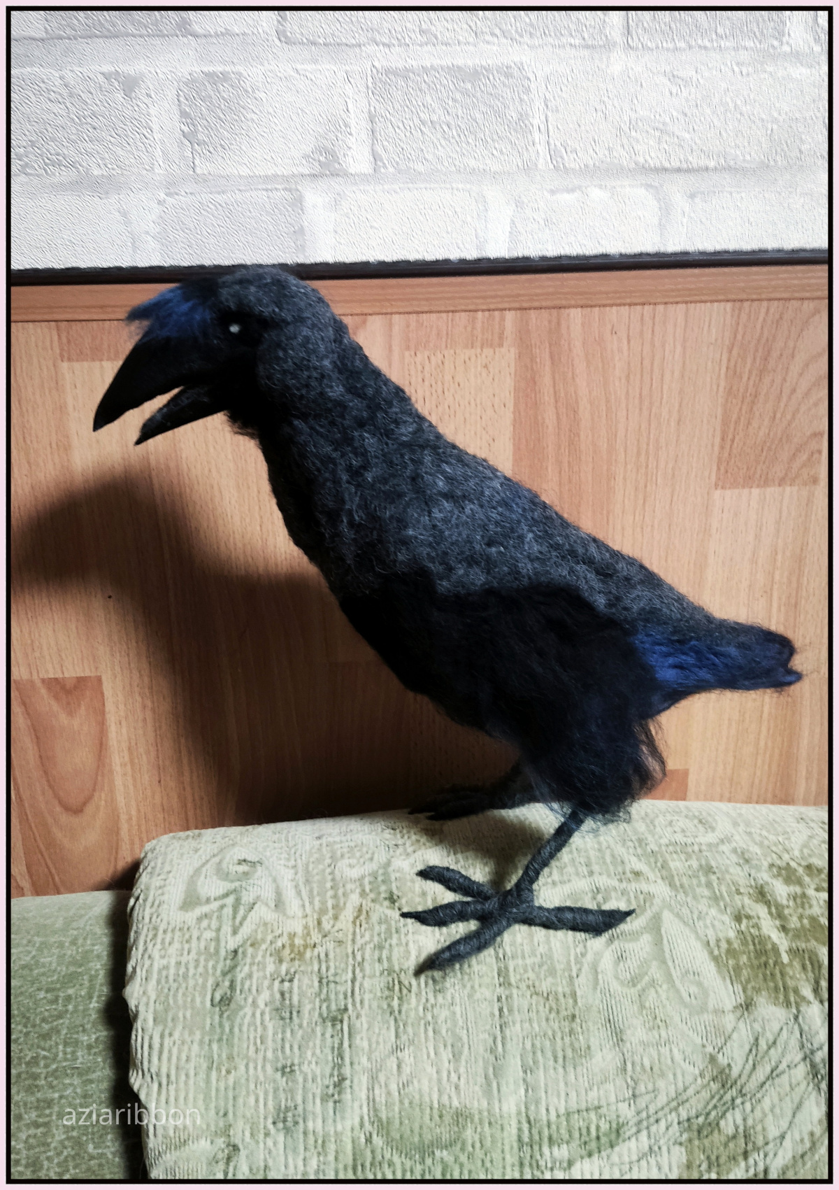 И только потом, когда начала наращивать на проволочном скелете «мышцы», поняла, что совсем необязательно была делать ворона в натуральную величину))) Размером с воробышка моделька вполне бы в качестве учебной работы сошла…