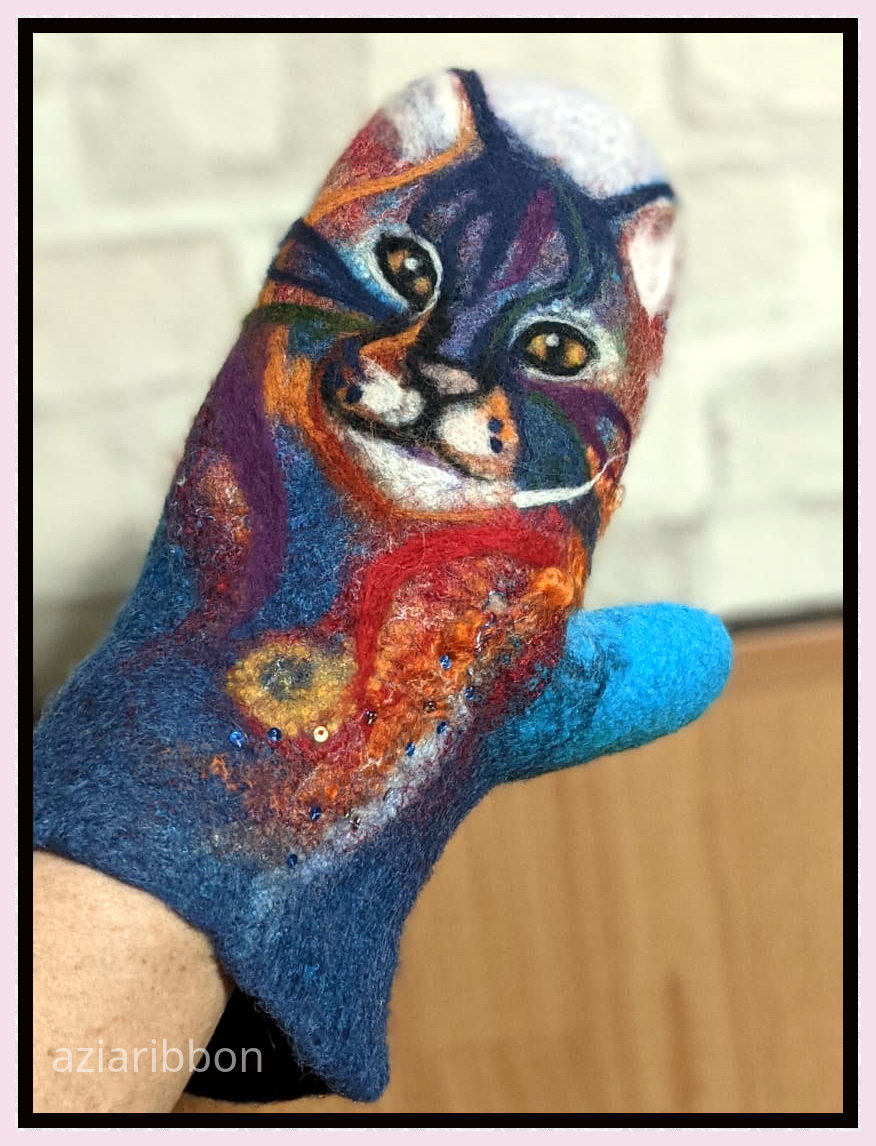 А ещё понравилось иголочкой на фетр, толстенький от 2 мм. Может, так можно и варежки… надо подумать.