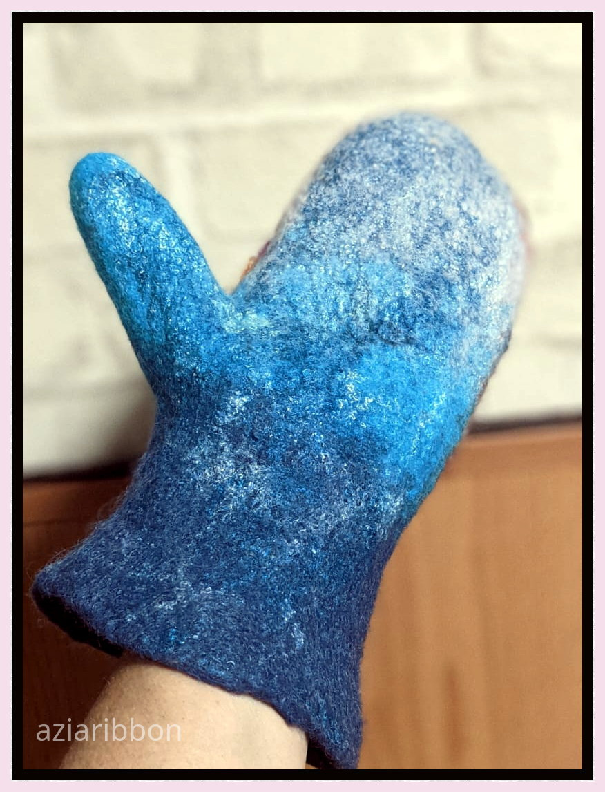 Тоже думала себе что-то типа варежек, но мокрое валяние совсем не мой вариант((( в крайнем случае постепенно наваливать на основу (кстати основа может быть любая, даже гипюр какой-нить) и сушить на «болванке»…