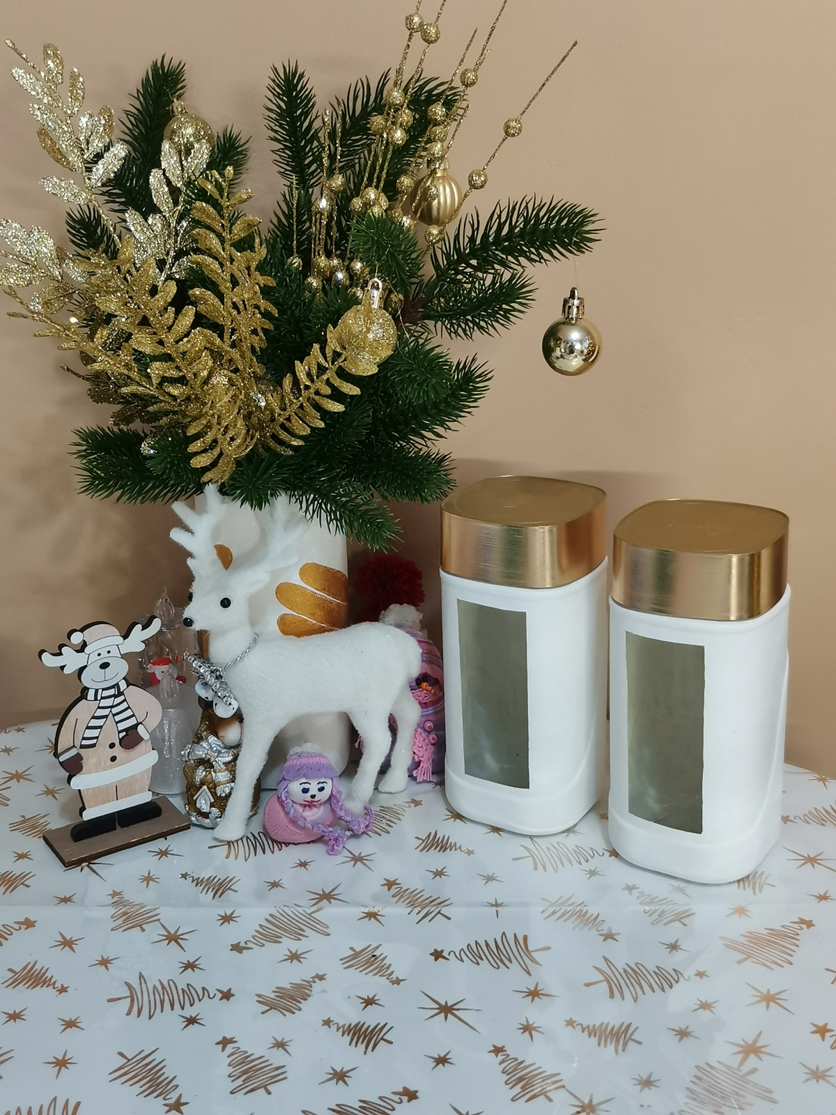 И набор для сыпучих продуктов из таких же банок сделала тоже для дочери.
