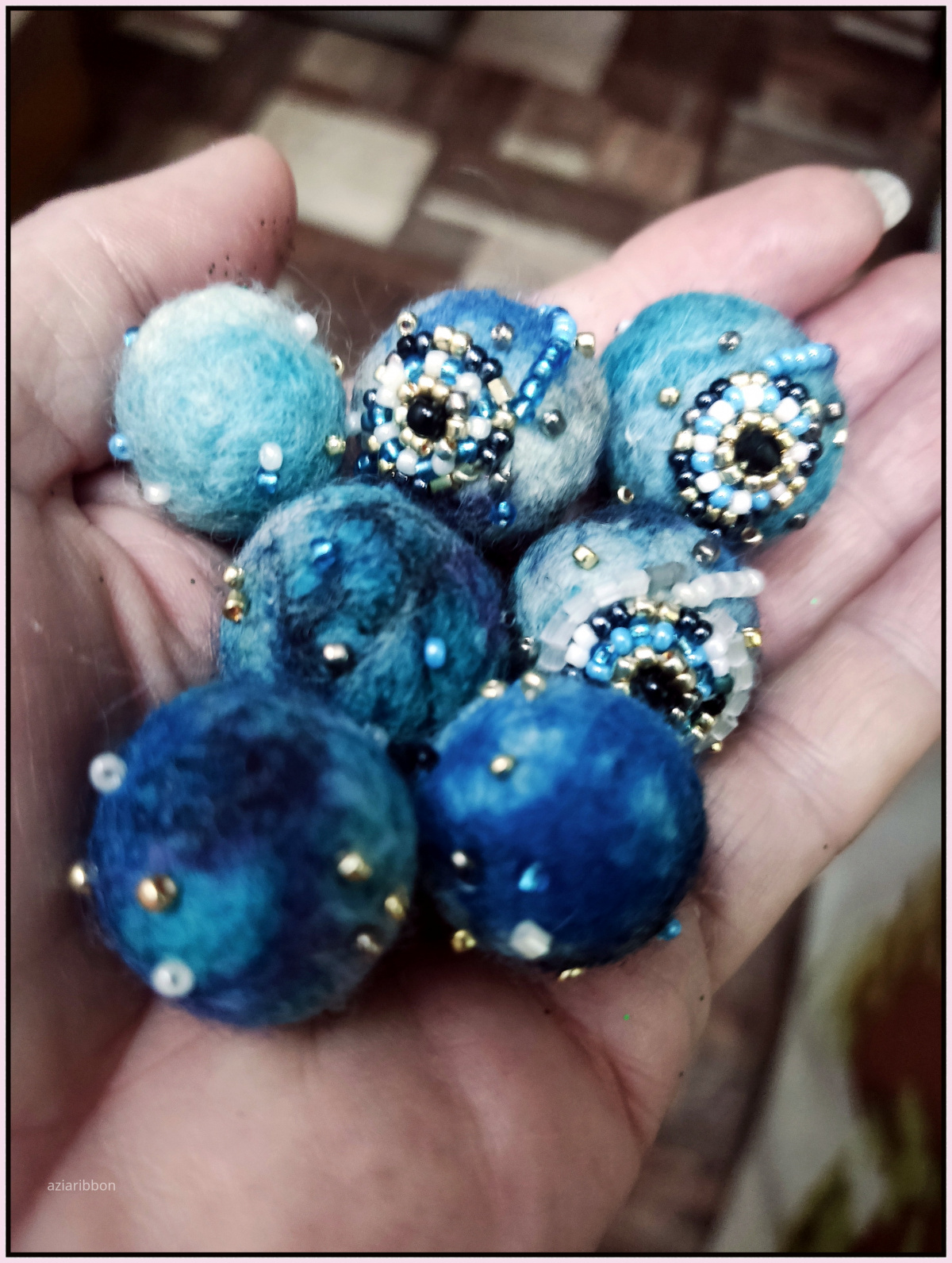 И вы думаете, что я выбросила всю расползшуюся турецкую шерсть? Плохо вы меня знаете))) Я начала из нее бусинки делать)