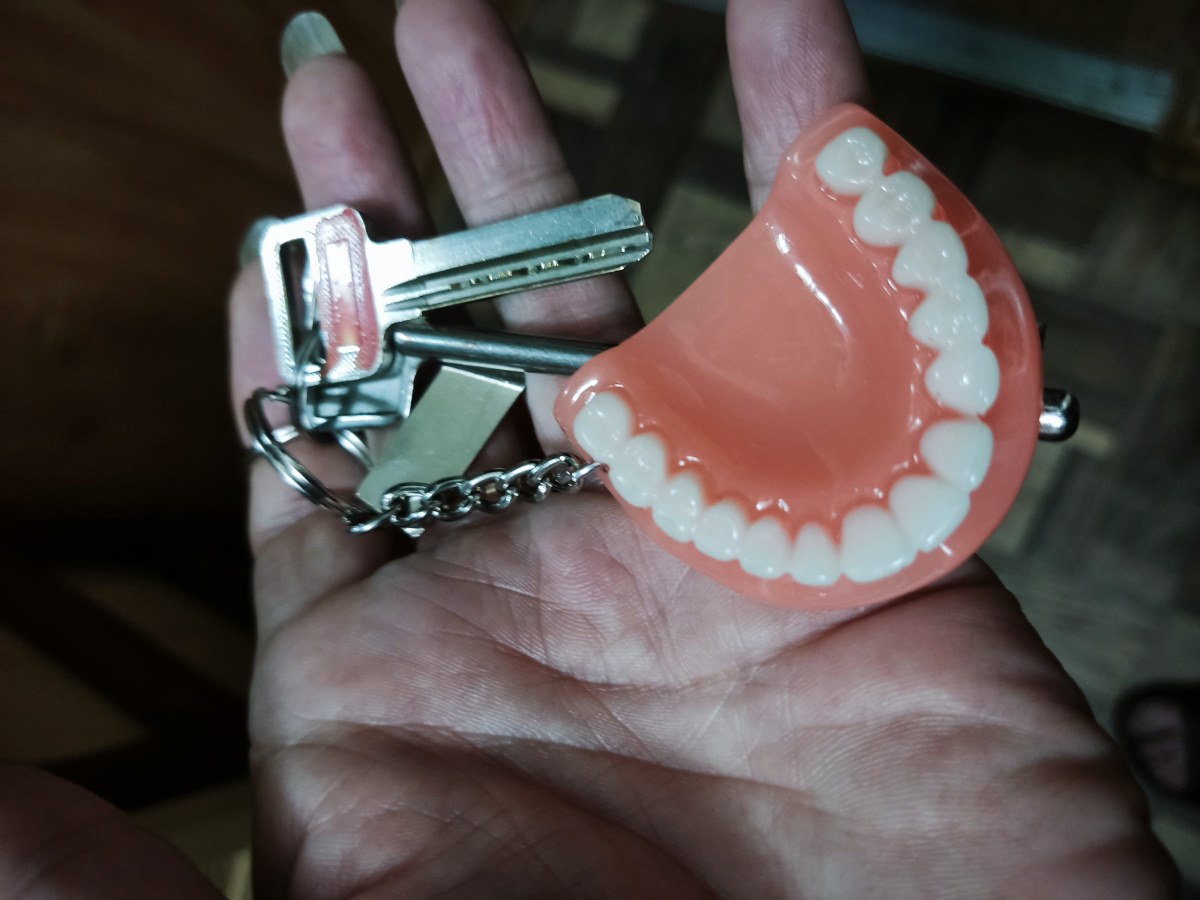 А когда показали весь набор — челюсть-брелок с ключами, признала, приняла. Спасибо внучке-креативщице, подарочек такой мне сделавшей)