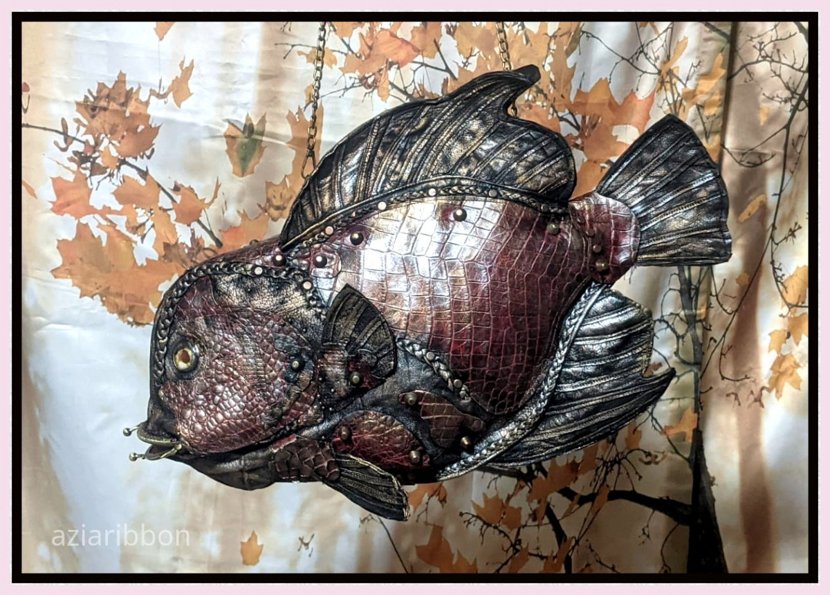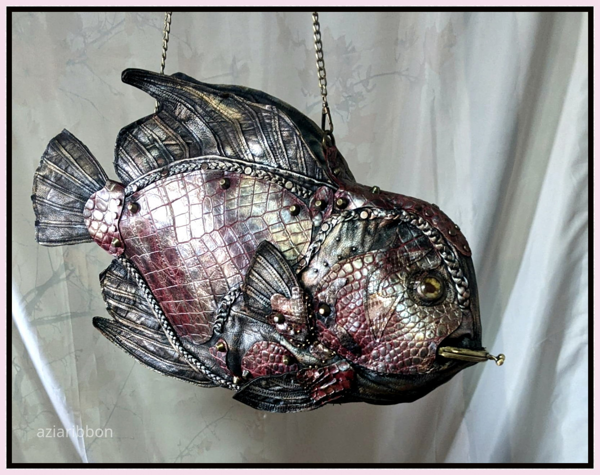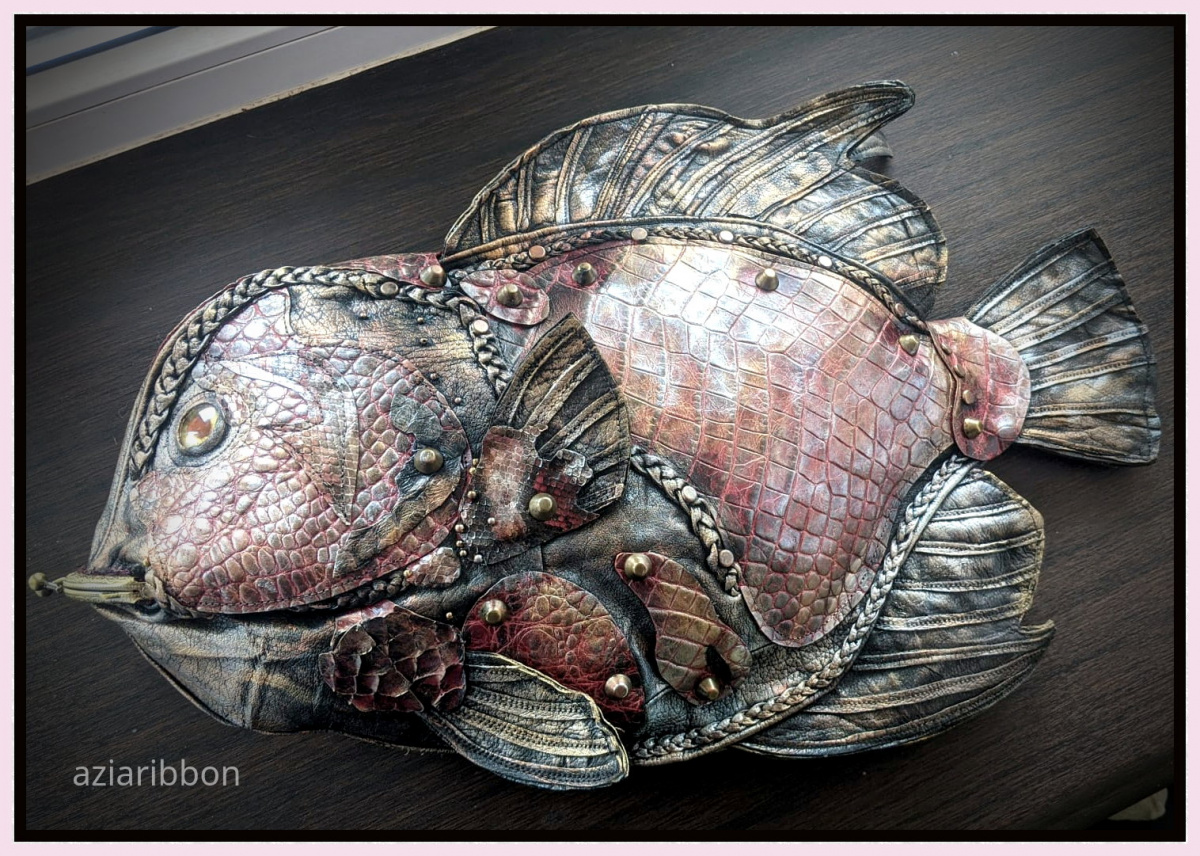 И доделала, наконец, сумку-рыбу по мотивам рыбы-ангела. Это первая кожаная работа в этом году.