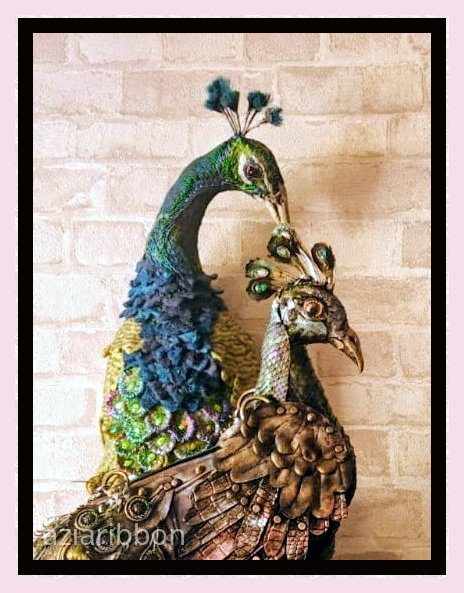 Еще в марте обратилась ко мне знакомая из дома пенсионеров с просьбой свалять павлина. Очень он ей вдруг понадобился.Идея у нее возникла по оформлению парадного окна или входной группы в магазине тканей, который принадлежит какой-то ее родственнице.