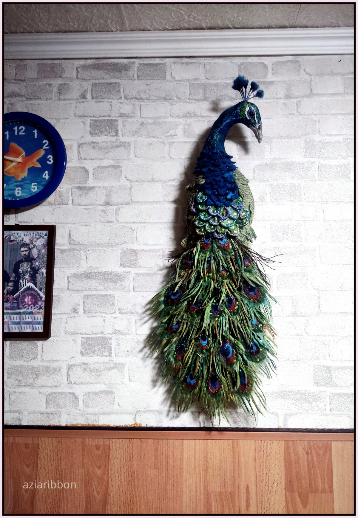 Интерьерный павлин, войлок.