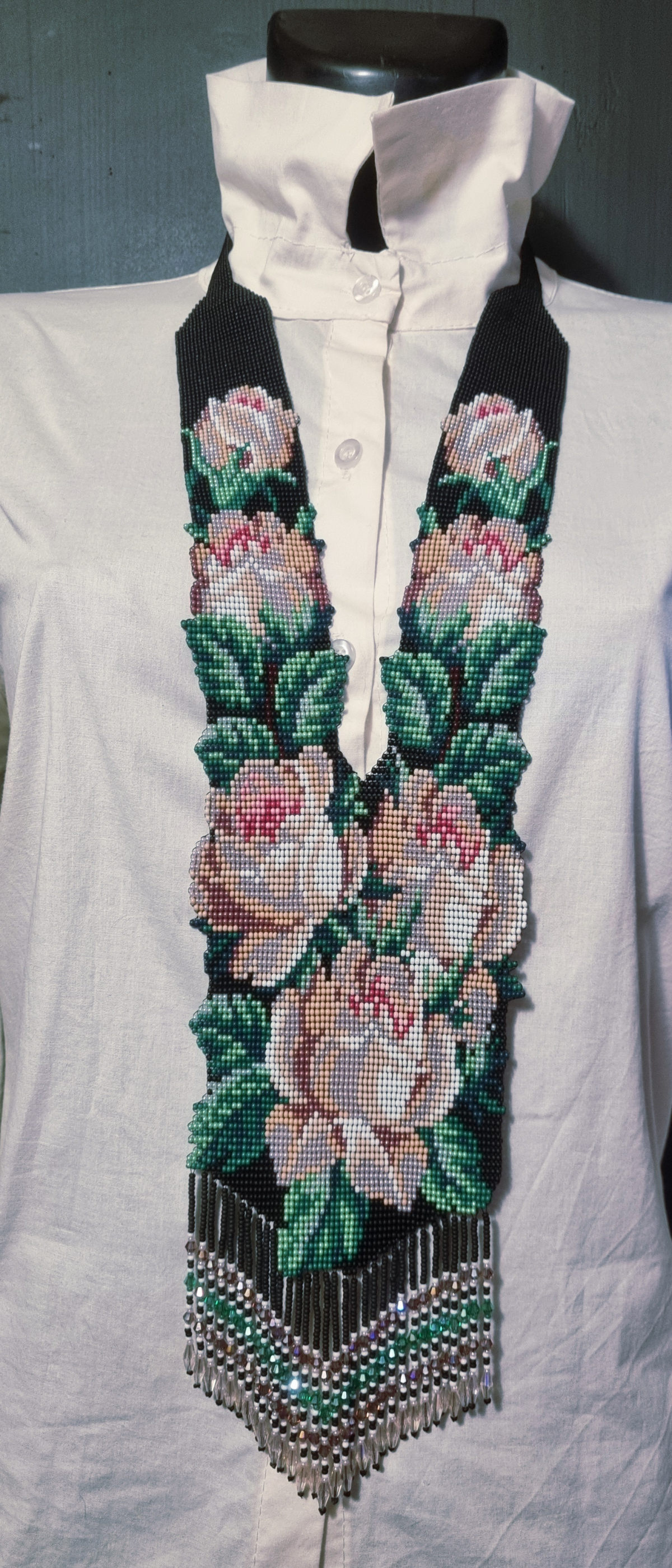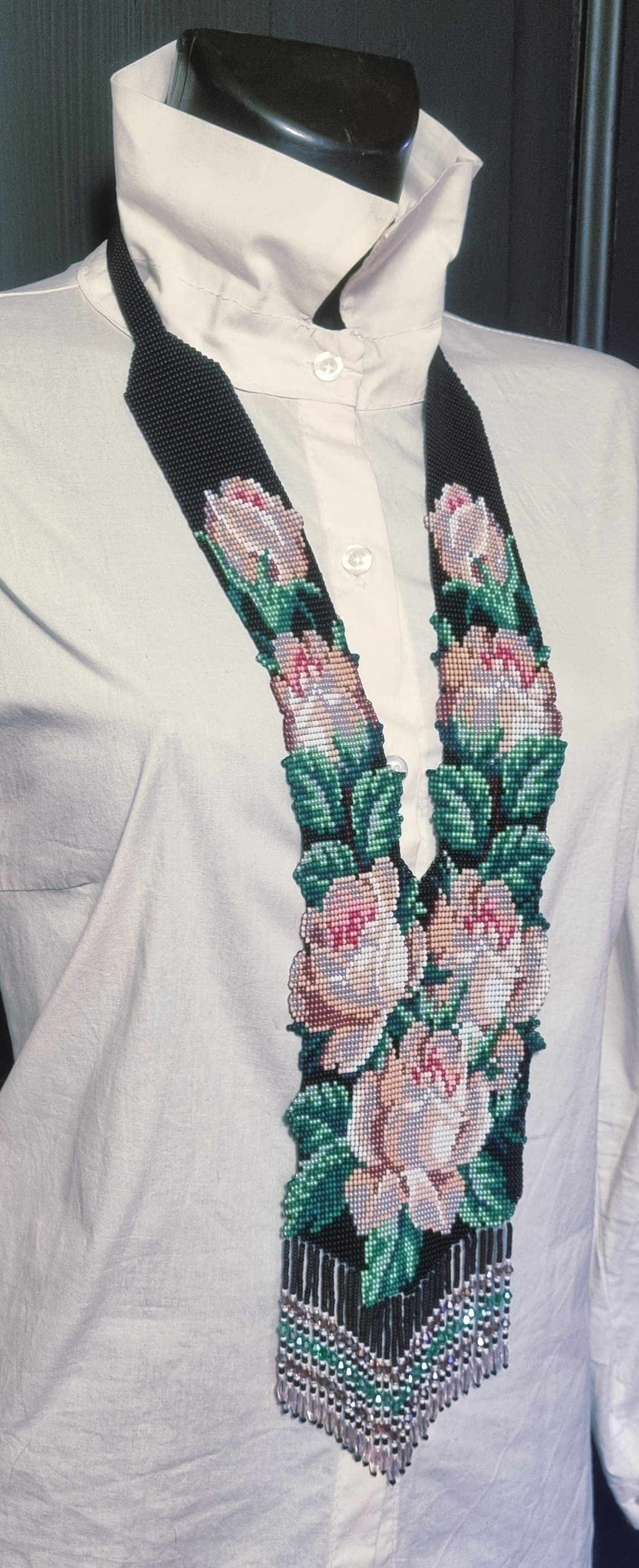 Как будто капли утренней росы застыли в бисере, придавая украшению свежесть и неповторимый блеск. Это колье — как дыхание весны, как нежный поцелуй солнца на лепестке розы.