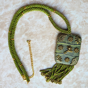 Второй лариат вязала из Чеха и остатков красивого золотисто-желтого японского бисера. Очень он мне...