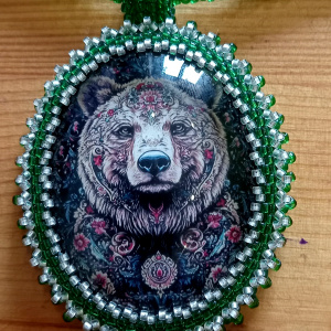 Обнаружила что не показала эту подвеску ). Она двухсторонняя, может служить подвеской в машину, обвесом на сумку или елочной игрушкой )