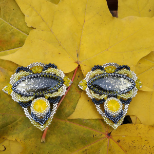 Из кулона с кистью сделала зажим для воротника (и еще один в пару). Переплела полностью — захотелось освежить серебристый бисер и...