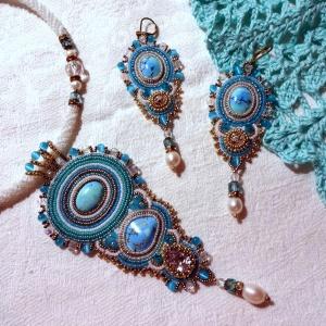 Тоже из старого и тоже в переделку, потому что золотой бисер облез. Но тут оставлю всё как есть, только бисер заменю. А кто-нибудь в курсе, почему бирюза может быстро поменять цвет? Эти кабошончики я когда купила, были нежно-голубого...