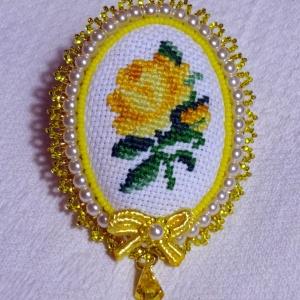 Моя первая брошь, вышитая крестиком по канве. Хотела поучиться вышивать бисером, но не нашлось такого количества нужных оттенков. Пришлось вышить крестиком)) Канва очень мелкая, для оправы брала чешский мелкий бисер №13 и №14, так что...