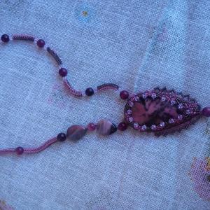 Моя первая работа после переезда в собственную (наконец-то) квартиру. Сделан по желанию заказчицы немного ассиметрично. Камень не капризначал. За что и люблю родониты.