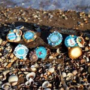Коллекция из 6 брошек. Основой послужил набор братсов для скрабукинга, ну и куча ракушек и бусинок.