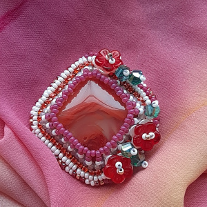 Крайне редко использую кабошоны с прямыми углами, но этот сердолик не капризничал и в подборе декора не протестовал