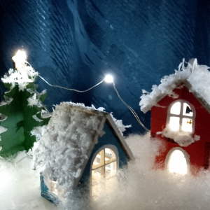 18 ноября — день рождения Деда Мороза. К этой дате в детском садике просили принести поделку. С моими подсказками и помощью внучка сделала небольшую заснеженную деревеньку.