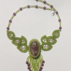 Колье с тиманским агатом и речным жемчугом.