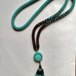 Ну и самый последний октябрьский штрих. Сперва хотела впихнуть эту фотку к только что выложенному колье, но есть один важный нюанс: браслет и цветок делала Света, моя заслуга — только риволюшный кулон, и то цвета и подвеску дочка...