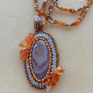 Кулон с основой из агата Вены дракона, очень красивый камень сам по себе, старалась не забить лишним декором, скоро отправится в подарок одной хорошей девочке
