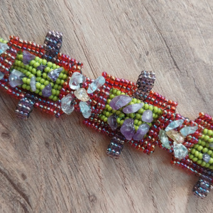 Доброго всем дня! Сплела чокер, давно хотела такой, да и девочки в кружке очень просили, нравятся им такие нарядные. Основа на станке, а бахрома приплеталась после, это на мой взгляд, удобнее.