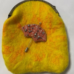 Вот и осень пришла. Всё чаще небо серое и птички на юг собрались. С понижением температуры меня вновь потянуло параллельно с бисером работать с шерстью. Вот такая сумочка получилась и брошь к ней бисерная.