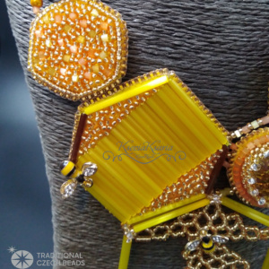 Сплетена из каменного бисера номер 8 и тёртого номер 10 по схеме Салфетка «Английская»