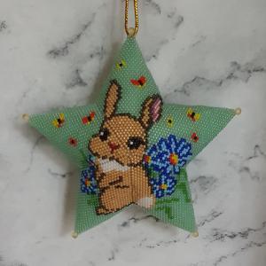 Как вы думаете, не пора ли уже начинать готовить зайчиков к следующему году? Пока что у меня сваялся абсолютно летний зайчишка с цветочками, среди бабочек. Схема Марии Зверевой.