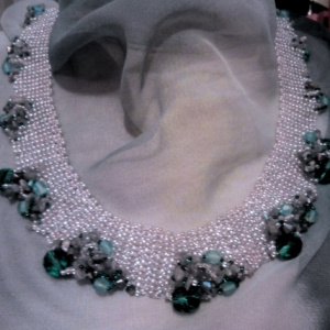 Гердан по фото из ИНЕТа. Ручное ткачество (гобеленовый стежок). Понравились эти кружева. Пробовала с фиолетовым бисером — получалось мрачновато. Здесь розовый чех 10/0 №38177 (А515)....