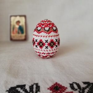 Сплелось очередное яйцо. Схема совсем простая, но за счёт формы яйца(более вытянутой) узор лёг как родной. Высота 7,5 см.