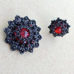 На самом деле планировался кулон, но на этот раз не срослось. Рабочее название «уголек». В кольце риволи 14 мм, в брошке — 16 или 18. Кроме обычных черных материалов использованы матовый черный бисер№23980 15-ка тохо №0344, матовые...