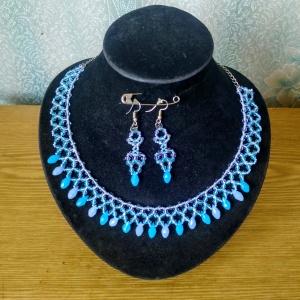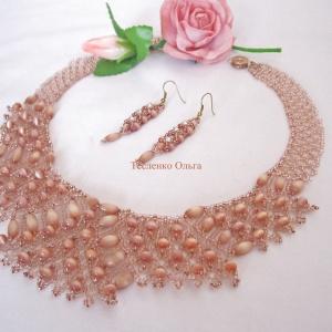 Впервые делаю колье, давно хотела оторваться от фетра и вышивки на нем, решилась, схему колье брала с интернета, сережки додумывала на ее основе, не хватило бусин, поэтому решила удлинить цепочкой....
