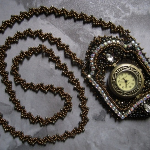 Еще одна «Брианна», на сей раз для себя Из бесцветного прозрачного чешского бисера, чтобы к любой темной одежде подходило. Эту «Брианну» я плела на файрлайне и поняла, что это самый подходящий вариант для данного колье — и не слишком...