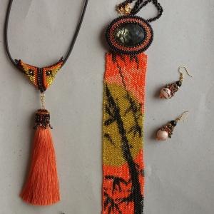 Брошь с унакитом с 2-мя булавками, которой не удалось с оранжевым галстуком подружиться, не обидела: И кисточку ей и сережки…