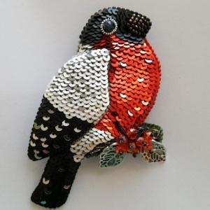 Первую птичку, которой я открыла свой альбом, была именно брошь Снегирь. Вышивала я её китайскими пайетками. Брошь очень нравилась и носила я её часто)