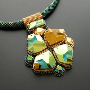 Тогда я ещё искала те формы украшений, которые мне нравятся и к длинным кулонам на подвесах ещё не пришла. Но здесь уже прослеживается моя любовь к креплению жгута спереди...