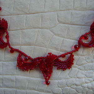 С Новым годом, дорогие Бусинки! Всем мира, добра, здоровья! Красное колье, лёгкое, с элементами косой мозаики, подходит практически ко всему моему гардеробу, и к белому, и к чёрному.