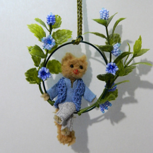 Тело котика сделано из синели, голова и хвост связаны крючком №3 из толстенной пушистой пряжи и подваляны (иглой для сухого валяния). Наверно, стоило бы еще сделать усы и немного раскрасить, но пока так. Давно хотела сделать...