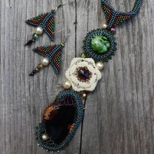 Когда я делала этот кулон… или все-таки галстук?.. у меня в голове так и завывал голос Михаила Боярского: «Есть в графском парке черный пруууууд!» (Как правильно заметили более внимательные люди, в оригинале пел-то не он, ну да...
