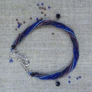 Первая проба ндебеле. Браслет на основе витого жгута ндебеле на 6 бисерин в оттенках сине-фиолетового. Подсмотрено в интернете ссылочка тут .